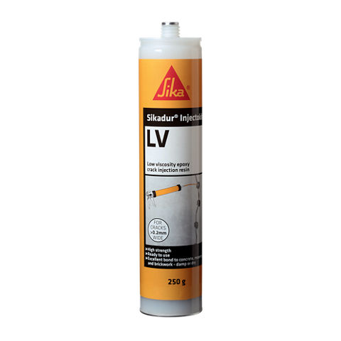 The Sikadur® Injectokit LV system consists of a low viscosity two part epoxy crack injection resin contained in a patented single cartridge with injection nipples, hoses, and air release pins also available. The system is designed for situations where a complete injection system is required.