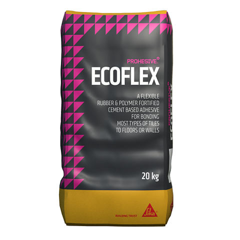 PROHESIVE® ECOFLEX is a flexible, rubber modified, polymer fortified, cement based adhesive adhesive designed for a variety of tiling applciations. PROHESIVE® ECOFLEX has extended coverage and is suitable for intternal and external applications.