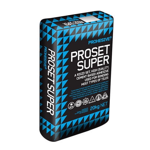 Prohesive Proset Super is a rigid, high strength adhesive used for bond tiles and pavers over masonry substrates. Prohesive Proset Super can be mixed with SikaCeram® T-Latex admixture for use over framed substrates for improved adhesion and flexibility.